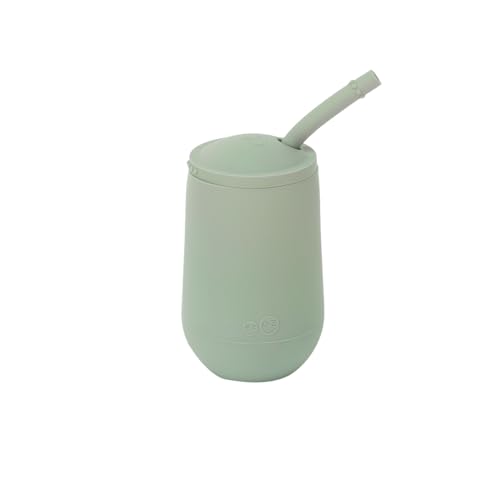 Ezpz Happy Cup 24 mesi + Bicchiere da allenamento per bambini piccoli con coperchio e cannuccia 100% silicone progettato da uno specialista in alimentazione pediatrica Salvia