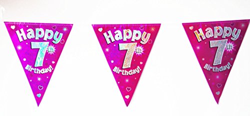 Happy 7th Birthday Flag Bunting Age Girls Pink Kids Banner Partyware Decorations