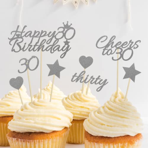 Glitter 30 ° compleanno cupcake toppers per dolci, torta, cupcake, muffin, snack, decorazioni per torta per 30 ° compleanno donne uomini feste di compleanno decorazioni per torta forniture.
