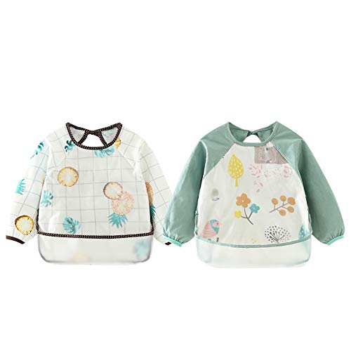 Happy Cherry - Bambini Grembiule Maniche Lunghe Bambino 2 Pezzi Bavaglino Impermeabile Bambine Cotone per Pittura Dipingere Giocare Mangiar Neonato Bib Lavabile per Scuola Casa - 1-2 Anni
