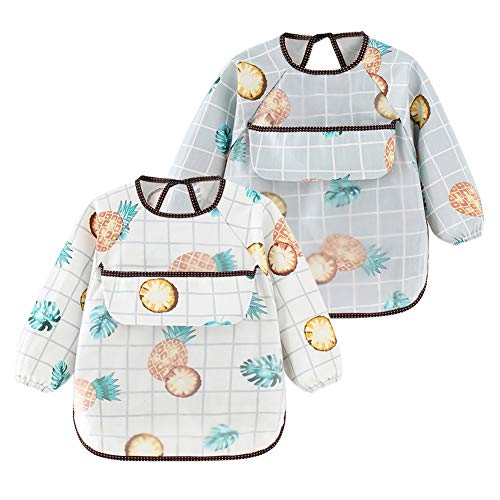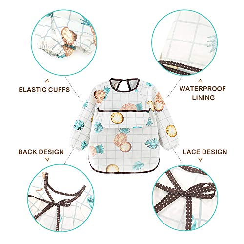 Happy Cherry - Bambino Bavaglino Impermeabile Maniche Lunghe Neonato Bambini Grembiule da Pittura per Dipingere Giocare Mangiar Bambine Bib Cotone per Scuola Materna Casa - 0-1 Anni
