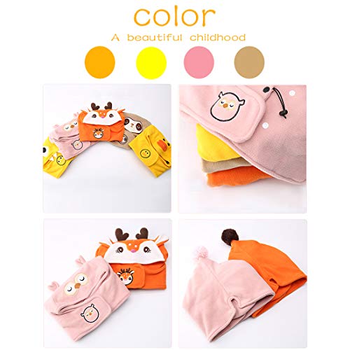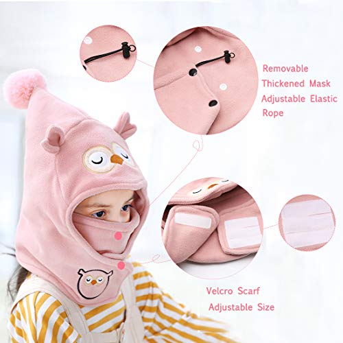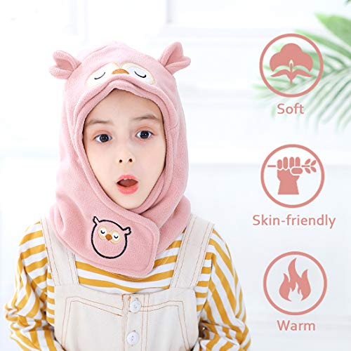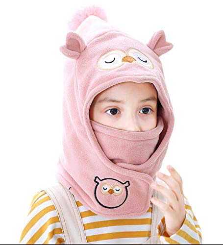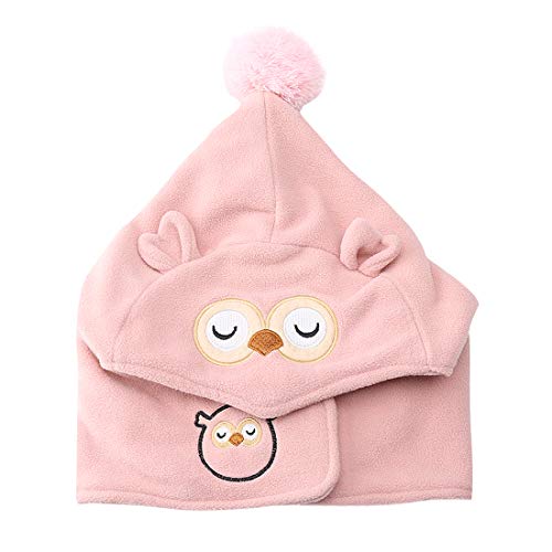 Happy Cherry Bambino Cappello con Sciarpa Cerchio Inverno Foderato Berretto Protezione Collo Cartone Animato Cappelli Caldo - Rosa