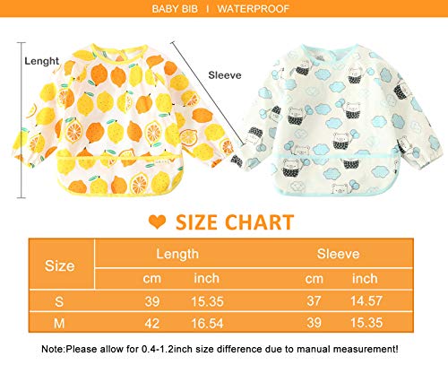 Happy Cherry - Bavaglino Impermeabile Neonato Bambino Grembiule Asilo per Pittura Dipingere Giocare Mangiar Bambini Ragazzi Ragazze Bavaglini con Maniche Lunghe per Scuola Casa Bib Lavabile - 1-2 Anni