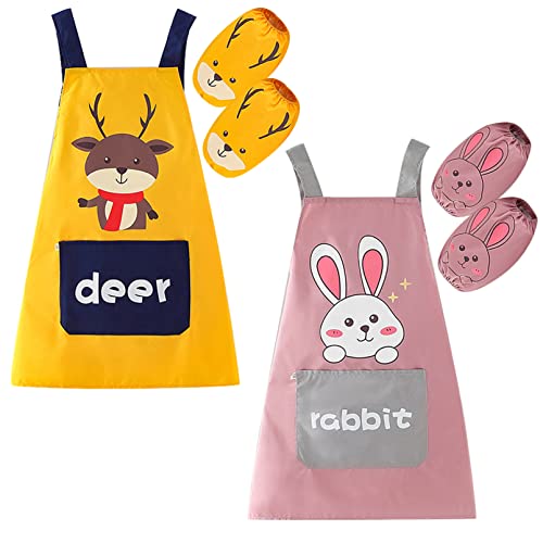Inoltre, 2 pezzi grembiuli per un facile cambio e lavaggio, ognuno dei nostri grembiuli viene fornito con maniche tonali copre per mantenere i vostri bambini puliti e ordinati.