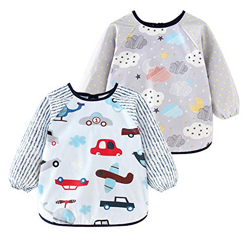 Bavaglino bambini con maniche è fabbricato con materiale poliestere impermeabile, facile da pulire e comodo da indossare.
