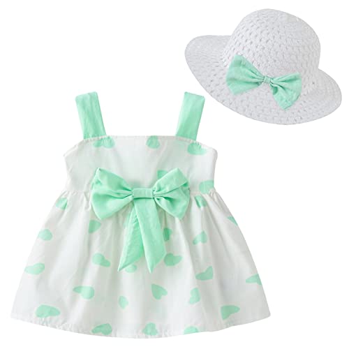 Happy Cherry Neonate Abitini Estivi Eleganti Bambina Vestito da Principessa Senza Maniche Ragazze Abbigliamento Estate e Cappello con Bow Set di 2 Pezzi per Spiaggia Festa Viaggio