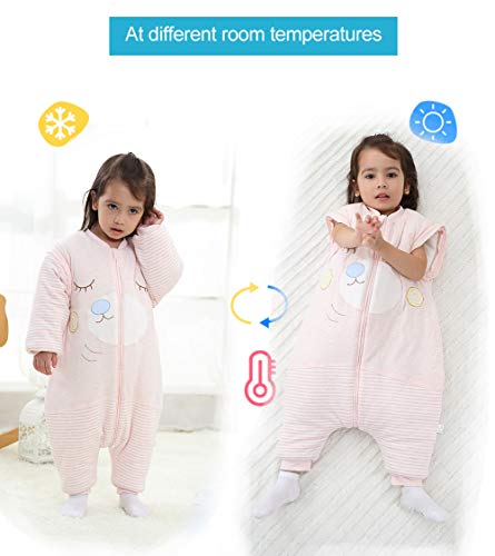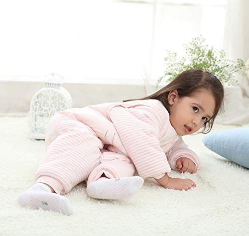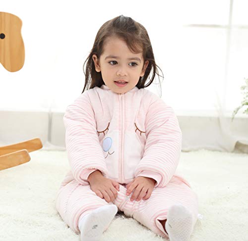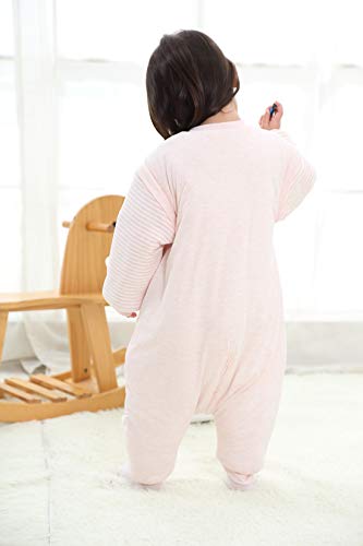 Happy Cherry - Sacco Nanna con Maniche Lunche Bambina Bambini Pagliaccetti Invernale con Piedi Sacco a Pelo Inverno Bambine Pigiama Caldo in Cotone con Gambe Separabili - 1-2 Anni - Rosa
