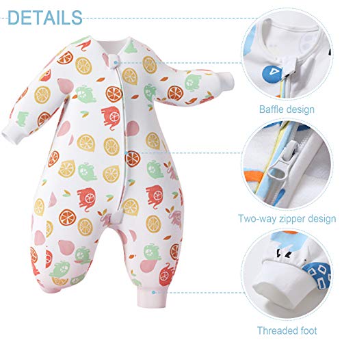 Happy Cherry Sacco Pigiama Nanna Maniche Lunghe Sacco Nanna Neonato Primaverile Ovetto con Cerniera Bambini Sacco a Pelo Manica Staccabile Autunnale in Cotone 12-18 Mesi 80-90cm
