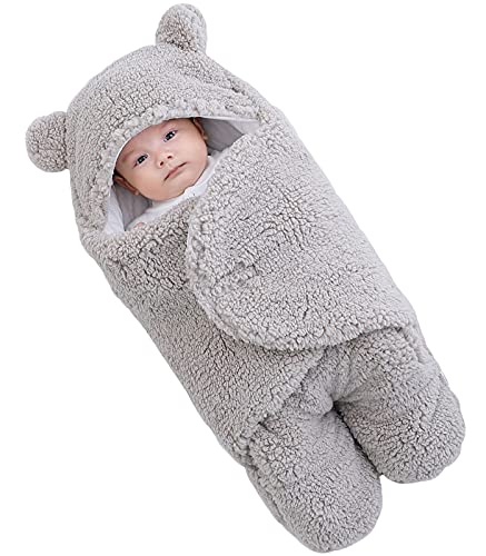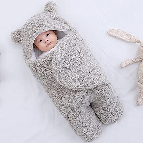 Happy Cherry Baby Swaddle Caldo Inverno Coperta Avvolgente Neonato Morbido con Cappello Infantile Sacchi Nanna Grigio 4 a 6 Mesi