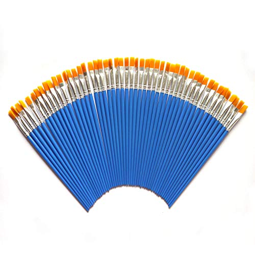 ONE HAPPY CHOICE 50 pezzi pennelli piatti di vernice piana set con capelli sintetici, manico corto in plastica, piccolo pennello Bulk Kit, acrilico olio acrilico acquerello Pittura Arte per bambini