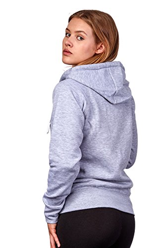 Happy Clothing, felpa basic da donna, con cappuccio e zip, tinta unita, S M L grigio mélange L