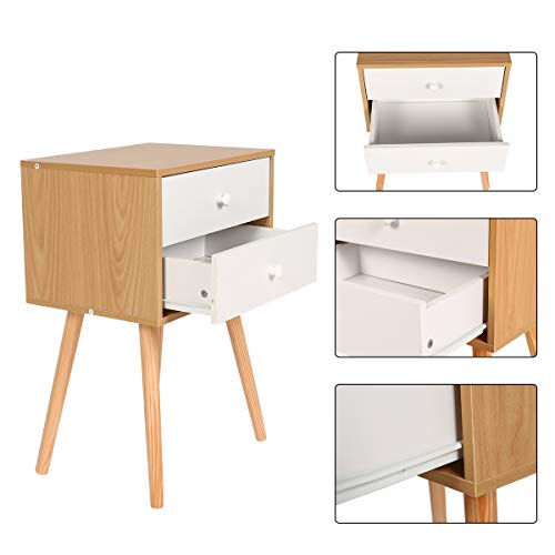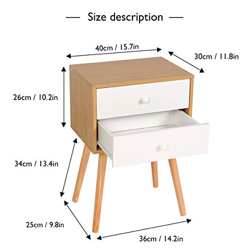 Happy Home Comodino Moderno con 2 Cassetti Comodino Mobili per Camera da Letto, 40x30x60 CM, Bianco, Legno, Set di 2