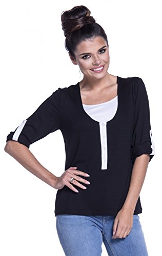 Happy Mama. Donna Top L'Allattamento a Doppi Strati Maniche Arrotolabili. 161p (Nero & Bianco, IT 42/44, S)