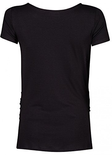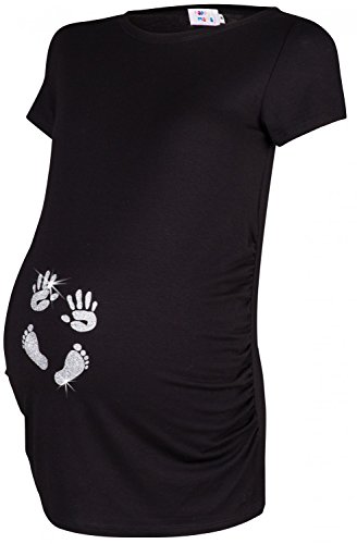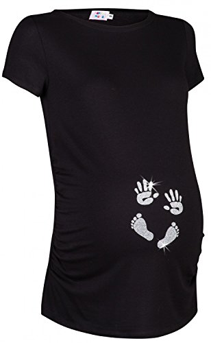 Happy Mama. Donna Maglietta Premaman Top T-Shirt Mani e Orma del Bambino. 013p (Nero & Argento, IT 42/44, M)