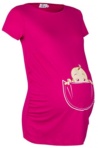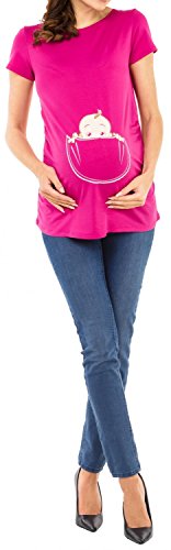 Happy Mama Donna Maglietta Premaman T-Shirt Maglia Bambino in Tasca Stampa. 501p (Fucsia, IT 50/52, 3XL)