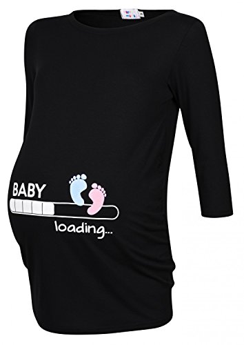 Happy Mama Donna Magliette Premaman T-Shirt Divertente Piedi Neonato Stampa 549p (Nero, IT 44/46, L)