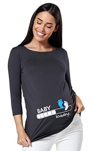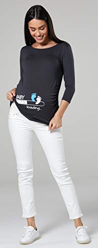 Happy Mama Donna Magliette Premaman T-Shirt Divertente Piedi Neonato Stampa 549p (Grafite, IT 46/48, XL)
