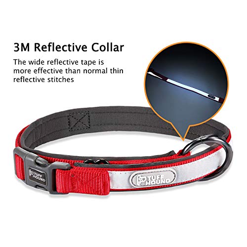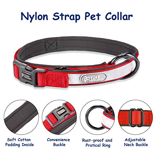 HAPPY HACHI Collare Cane Regolabile Catarifrangente Dog Collar Resistente Imbottito Nylon per Cani Piccola Media Grande (Rosso, S)