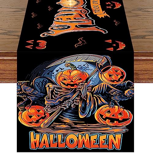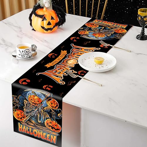 Happy Halloween Runner da tavolo, extra lungo, scheletro di zucca, Halloween, lavabile, runner da tavola per Halloween, cucina, tavolo da pranzo, decorazione da tavolo per casa, Halloween, feste, sala