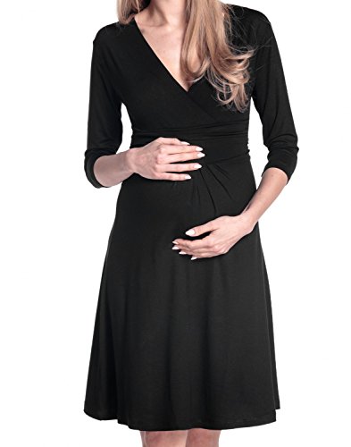 HAPPY MAMA Maternity Donna Viscosa Vestito Ginocchio Lunghezza 282p (Nero, IT 42, M)