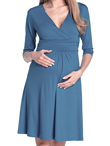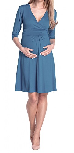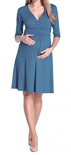 HAPPY MAMA Maternity Donna Viscosa Vestito Ginocchio Lunghezza 282p (Blu Jeans, IT 42, M)