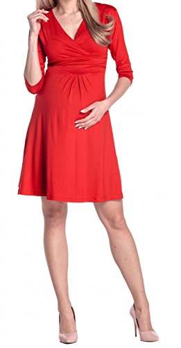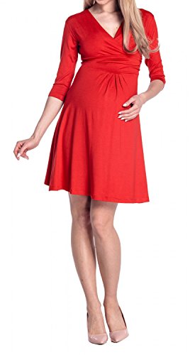HAPPY MAMA Maternity Donna Viscosa Vestito Ginocchio Lunghezza 282p (Rosso, IT 48, 2XL)