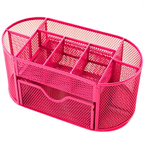 Happy FD metal mesh Desk organizer portapenne 8 componenti 1 cassetto estraibile Office supply Caddy Pen file Holder Home Office Dorm Rosy