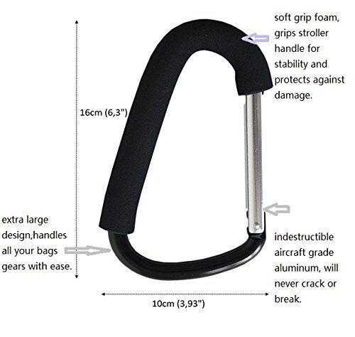 Happy Mummy Hook and Stroll X-Large carrozzina Buggy clip, pezzi universale passeggino organizzatore passeggino ganci Mummy moschettone clip per appendere pannolino, borsa per la spesa, ecc. Dimensioni: 16 cm (L) * 10 cm (W), adatta a tutti i singolo e doppio sistema da viaggio