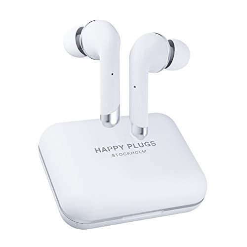 Happy Plugs Air 1 Plus in-Ear - Auricolare Senza Fili - True Wireless - 100 Db - Resistente al Sudore - Batteria 30 mAh in Ogni Auricolare - Batteria 450 mAh nella Custodia di Ricarica - Bianco