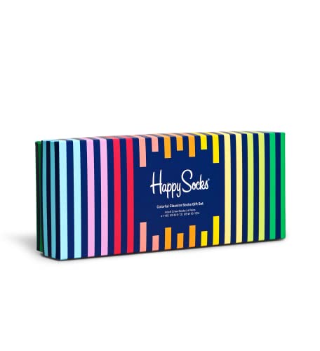 Happy Socks 4-Pack Colorful Classics Socks Set, colorati e divertenti, calzini per uomo e donna, Blu-Rosa-Giallo-Verde-Rosso-Arancia-Grigio (41-46)
