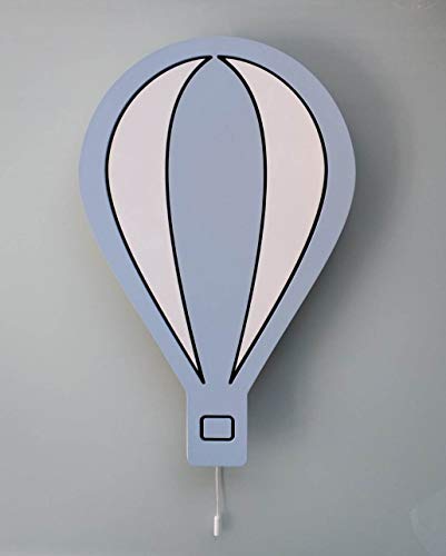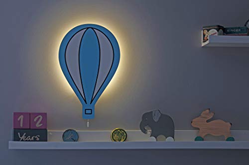 Happy Woody Lampada da parete a forma di mongolfiera per cameretta, cameretta dei bambini, decorazione da parete, luce notturna per bambini, luce bianca calda a LED (blu tenue)