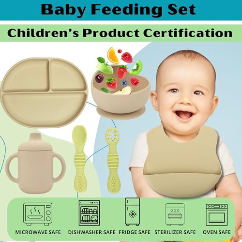 ️ STOVIGLIE PER BAMBINI IN SILICONE 6 PEZZI. Le nostre stoviglie comprendono tutto il necessario per l'alimentazione del bambino. Si compone di un piatto diviso con ventosa, perfetto per l'alimentazione complementare, una tazza per l'apprendimento, di un bavaglino in morbido silicone regolabile al collo del bambino, di una ciotola con ventosa, di un cucchiaio didattico progettato per i primi cibi solidi e di un cucchiaio in morbido silicone per non danneggiare le gengive del bambino.