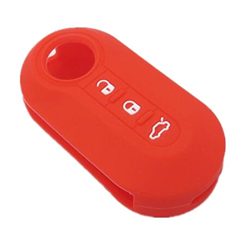 Happyit Cover in silicone per chiavi auto per Fiat 500 Panda, Punto, Bravo, design a forma di telecomando con 3 pulsanti Red