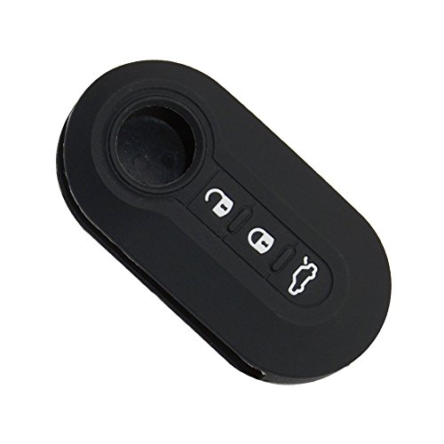 Happyit Cover in silicone per chiavi auto per Fiat 500 Panda, Punto, Bravo, design a forma di telecomando con 3 pulsanti Nero