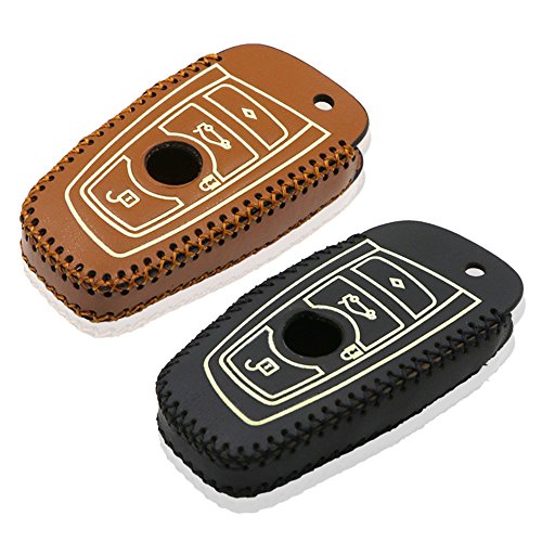 Happyit - Custodia in pelle per chiave auto BMW 3 5 7 GT 730 740 Smart fatta a mano croce con effetto fluorescente (marrone)