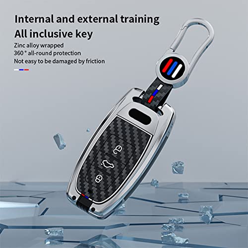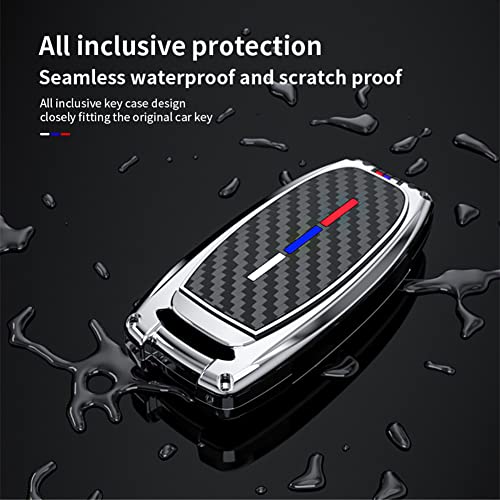 Happyit Custodie di Copertura Della Chiave Dell'auto in Lega di Zinco per Audi A3 A4 A5 A6 A7 S4 S5 S6 S7 S8 Q5 3 Pulsanti con Fibra di Carbonio Modello in Silicone (Argento)