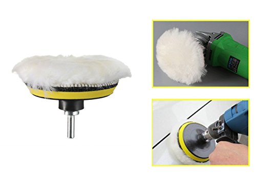 Happyit - Disco lucidante per auto, disco lucidante in lana, spugna per applicazione trattamento a cera + cuscinetto in lana + kit adattatore per trapano M14, 7 pezzi