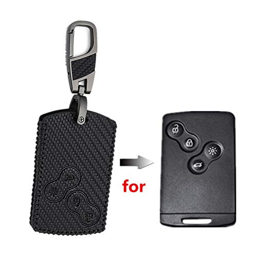 Happyit - portachiavi/custodia di pelle in stile fibra di carbonio, con 4 pulsanti Linea nera