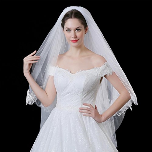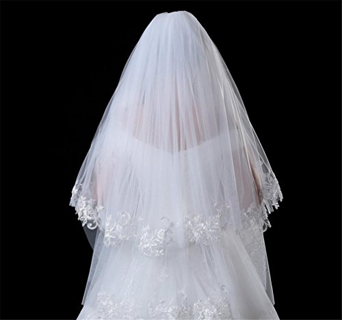 HAPPYMOOD Velo da Sposa Doppi Strati 80-100cm Velo da Sposa Pizzo Corto Tocco Leggero Festa Accessorio da Sposa