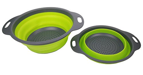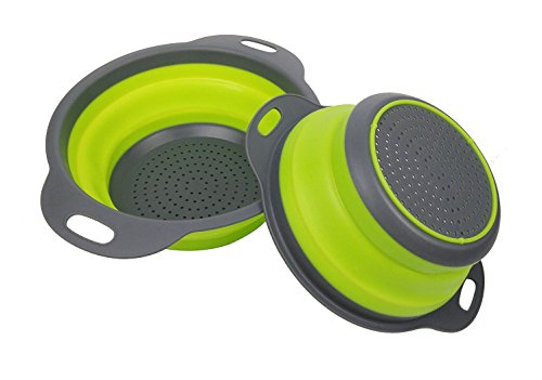 Hapway set da 2 ciotole da cucina scolapiatti pieghevole in silicone, food strainer, uso per scolare pasta, verdure, patate, ecc., include 2 taglie 8 e 24,1 cm Green