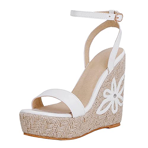 HapyLady Moda Donna cuneo Sandali Con Fiore Slingback Tacco Con cravatta Cinturino alla Caviglia Estate Scarpe Festa Sandali Bianco Numero 33 Asiatico