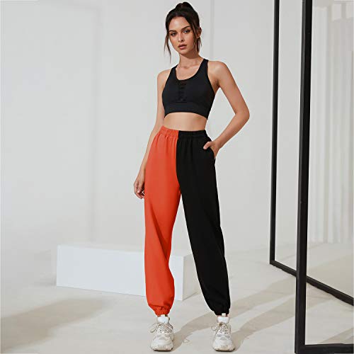 Pantaloni da jogging bicolori: a differenza dei semplici pantaloni sportivi, la combinazione di bicolore garantisce uno shock visivo, ♥ Design casual casual, gamba larga, pantaloni da yoga lounge con due tasche laterali e vita alta elastica, molto comodi e pratici durante lo sport, i pantaloni da jogging lunghi da donna hanno uno stile alla moda e un design semplice. Esegui la tendenza della moda
