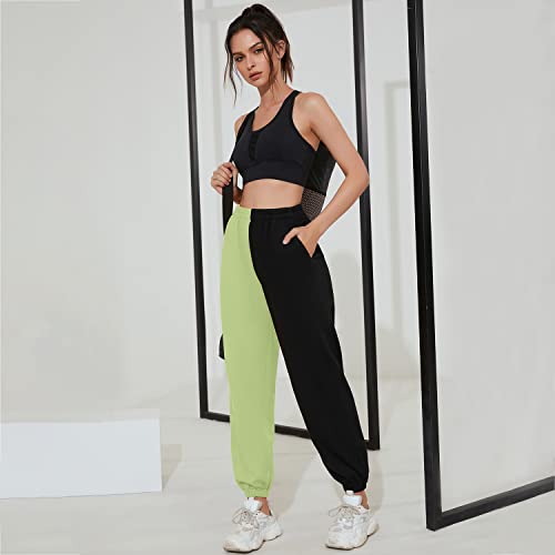 Pantaloni da jogging bicolore: a differenza dei semplici pantaloni sportivi, la combinazione di due colori garantisce uno shock visivo, ♥ Design casual casual, gamba larga, pantaloni da yoga con due tasche laterali e vita alta elastica, molto comodi e pratici durante lo sport, i pantaloni lunghi da jogging da donna hanno uno stile alla moda e un design semplice. Guida la moda