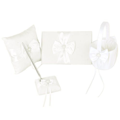 Harayaa Kit di Accessori per Matrimoni Libro degli Ospiti Cuscino Porta Penna E Cestino con Fiore Petalo