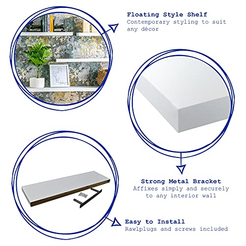 Harbour Housewares, Mensole Fluttuanti da Parete, in Legno, 80 cm, Colore Bianco - Confezione da 3
