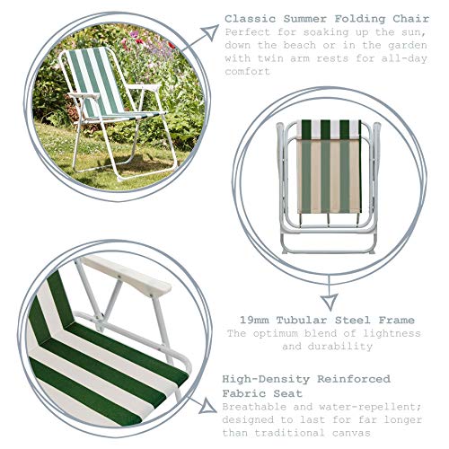 Harbour Housewares Sedia Pieghevole da Giardino/Campeggio/Spiaggia - in Metallo - Verde a Strisce - 4 Pezzi