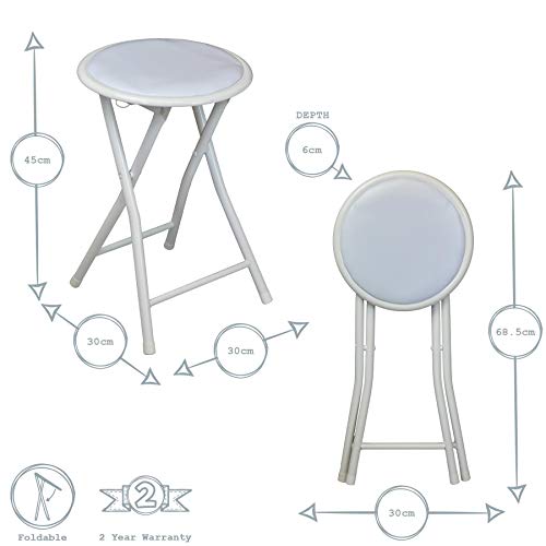 Harbour Housewares Sgabello Pieghevole Rotondo e Compatto - Bianco - 2 Pezzi