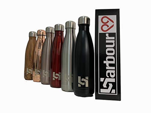 Harbour 99 Steel Collection 6 Borracce Termiche Acciao Inox 18/8 Isolamento Termico a Doppia Parete 500 ml Palestra Scuola Running Fitness Sport Ufficio Yoga no BPA (500 ML, Steel Collection)