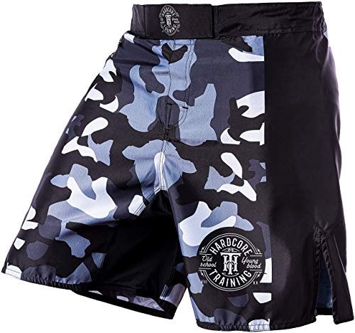 Hardcore Training Recruit Fight Shorts Nero Rosso Verde Viola Uomo Pantaloncini da Combattimento Arti Marziali MMA BJJ Boxe Muay Thai Grappling Fitness No Gi (Camo Grey, s)