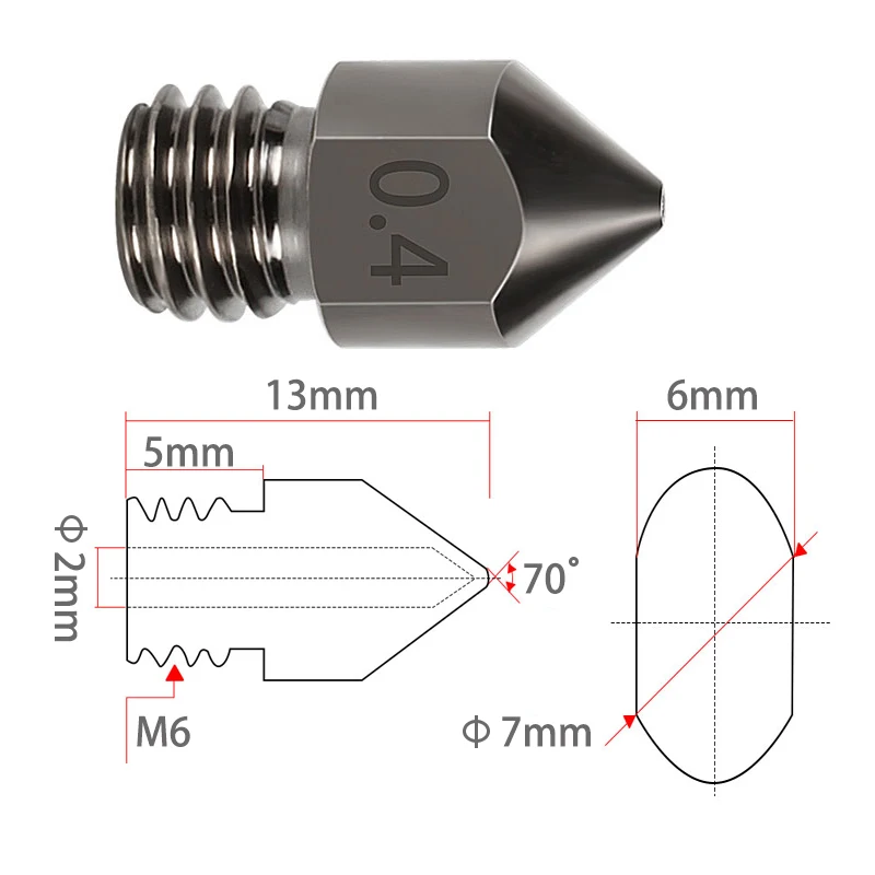 MK8 Hardened Steel Nozzles M6 Thread 1.75MM Filament Extrusion 3D Printers Hard Steel Nozzles 0.2-1mm CR10 HOTEND Extruder parts